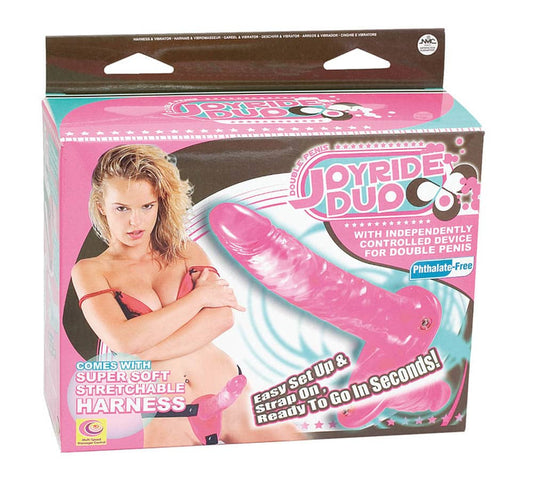 Joyride Duo Pink - Strap On Dublu cu Vibrații, 17x3.5 cm