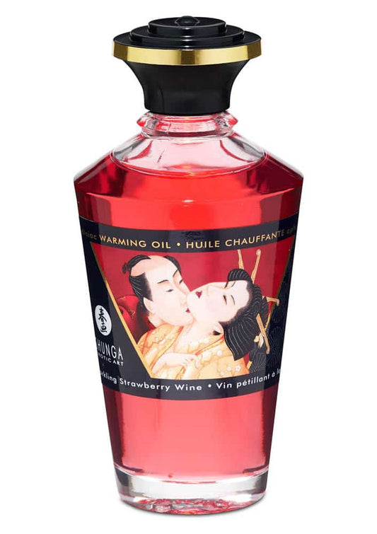 Aphrodisiac Shunga - Ulei de Masaj cu Aroma de Capsuni si Efect de Incalzire, 100 ml